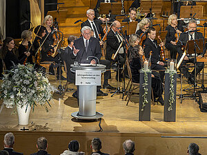 Bundespräsident Frank-Walter Steinmeier bei seiner Rede auf der Bühne