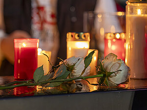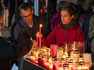 Kerzen und Leuchten erinnern an die Opfer des Anschlags.