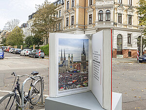 Ein „Gedenkbuch“ am Wegesrand in der Nähe der Synagoge