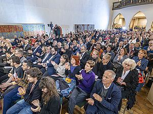 Die erste Reihe der Gäste bei der städtischen Gedenkveranstaltung in der Konzerthalle Ulrichskirche