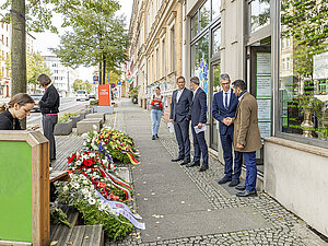 Auch am Tekiez, dem zweiten Anschlagsort am 9. Oktober 2019, hat die Stadt Kränze abgelegt, um der Opfer zu gedenken.