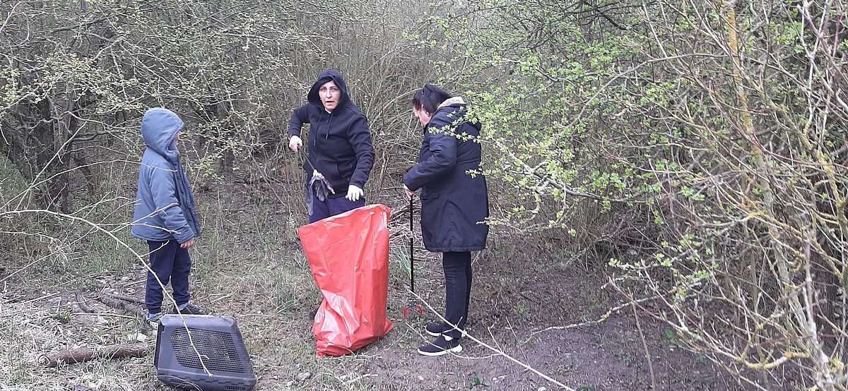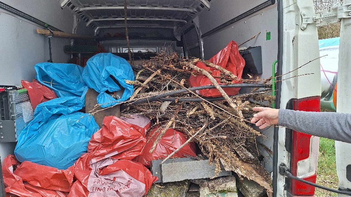 Anwohner haben am 09.04.2025 im Landschaftsschutzgebiet am Gestüt Kreuz Müll gesammelt.