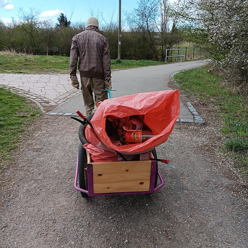 Eine Privatperson hat am 30.03.2025 im Bereich der Hafenbahntrasse Streumüll gesammelt.