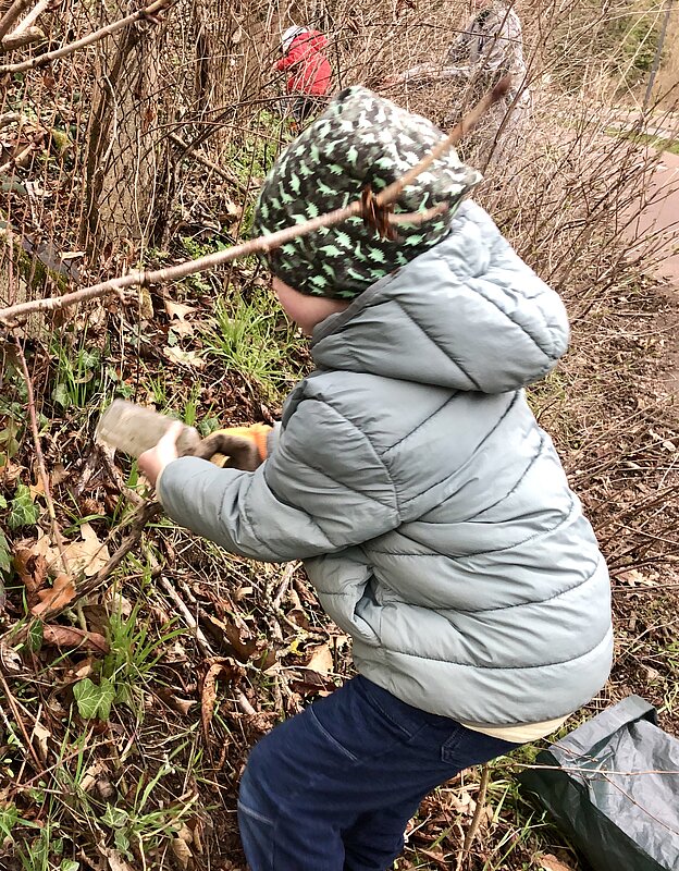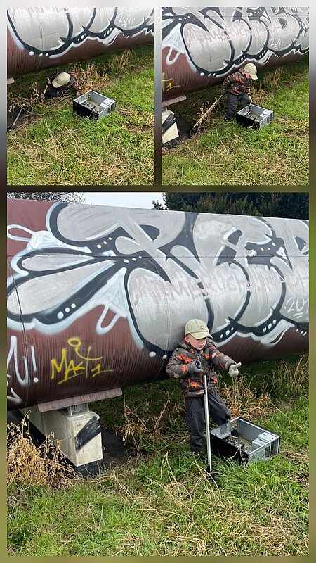 Im Rahmen des Frühjahrsputzes wurde mit Kindern aus der Nachbarschaft Am Gestüt Kreuz, im Amselgrund und an der Ernst-Grube-Straße bis zur Kreuzung Weinbergweg Müll gesammelt.