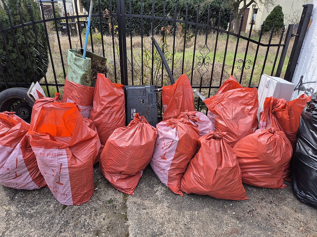 Am 23.03.2026 haben Beschäftigte und Personal der Halleschen Behindertenwerkstätten (HBW e.V.) im Umfeld vom Südstadtring 60 den Müll aufgelesen.