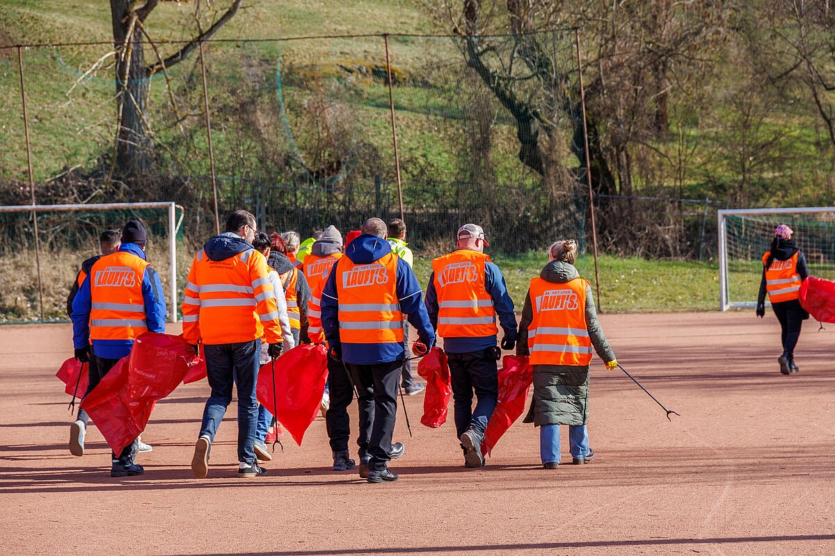 Mitarbeitende vom Jugendclub TiQ (Franckesche Stiftungen) befreiten das Umfeld von Streumüll.