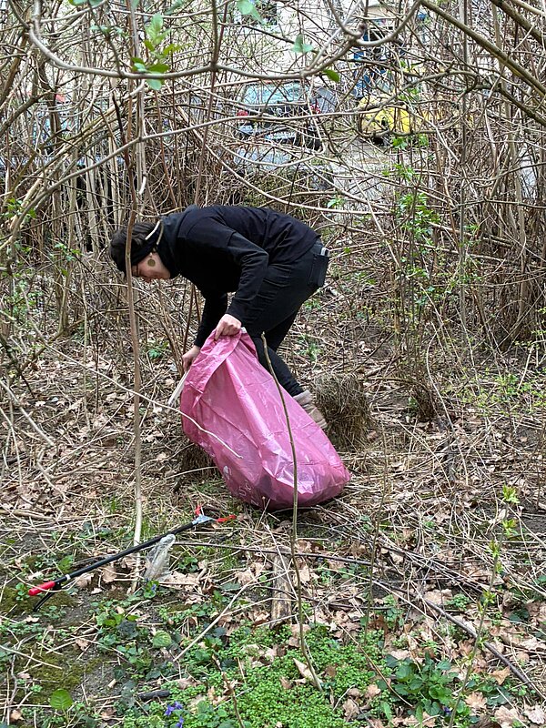 Eine Anwohnerin hat im Umfeld "Harz" die Grünflächen gesäubert und Müll aufgelesen.