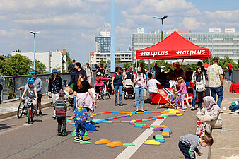 Brückentag 2024 - für die Veranstaltung wurde die Brücke über den Riebeckplatz am 10. Mai für den Autoverkehr gesperrt