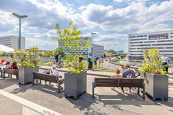 Freifläche mit Sitz- und Informationsangeboten