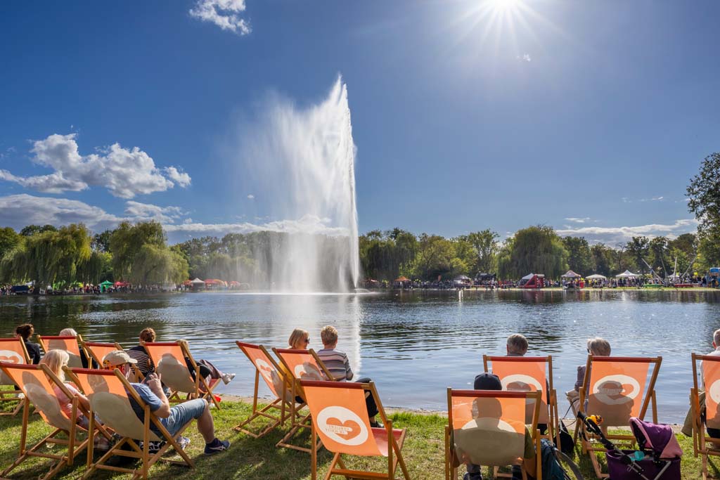 Jährlich am zweiten Sonntag im September findet das Fontänefest auf der Ziegelwiese statt. Während die Fontäne im Normalbetrieb auf Kosten sparend heruntergeregelt ist, zeigt sie zum Fontänefest, was in ihr steckt. Mit Einbruch der Dämmerung wird die Fontäne farbenprächtig in Szene gesetzt. Familien, Kultur und Genuss stehen beim Fontänefest im Mittelpunkt. Für Kinder gibt es ein extra Zelt mit allerhand unterhaltsamem wie mitreißendem Theater. Rings um den Teich gibt es Kulinarisches und allerhand Programm für Groß und Klein – ein Sonntagstipp für Familien. Mit ihrem Fest wollen die Freunde der Fontäne zum Lesen anstiften. Regionale Verlage, Druckereien und Autoren sind eingeladen..