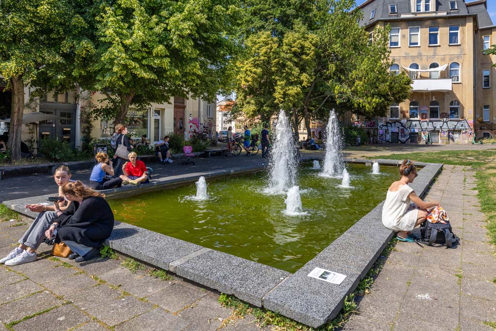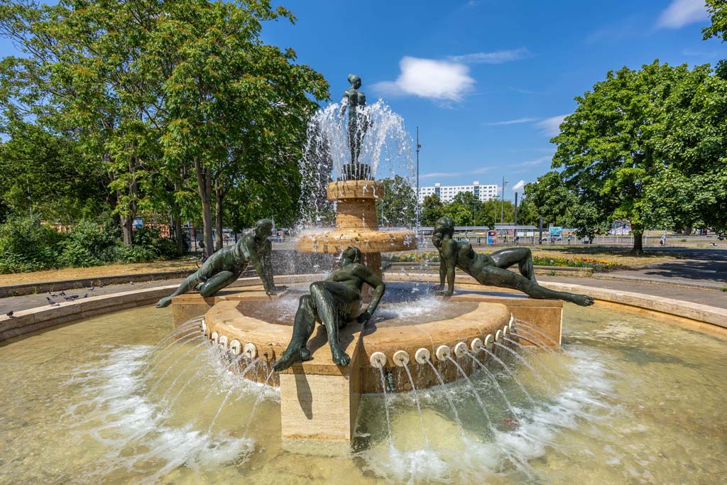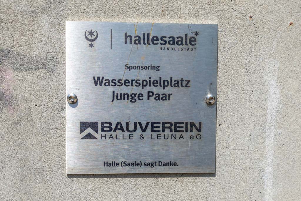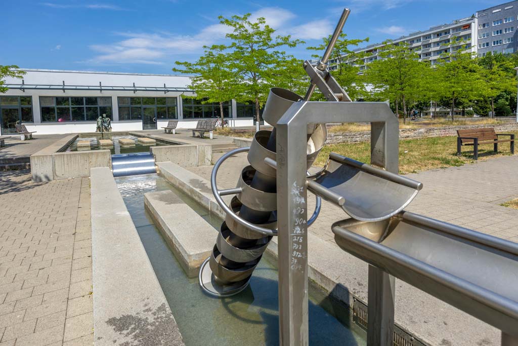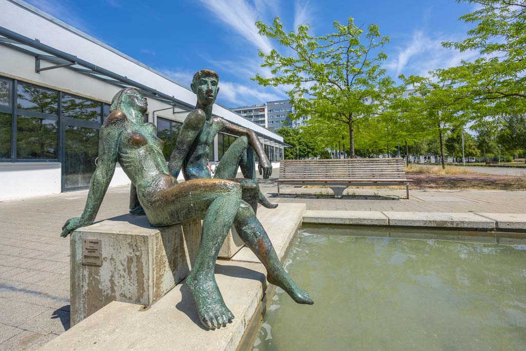 Zur Gesamtanlage des Wasserspielplatzes Am Gastronom gehört auch der Brunnen „Junges Paar“.