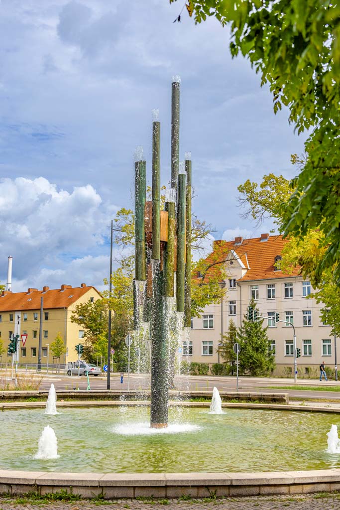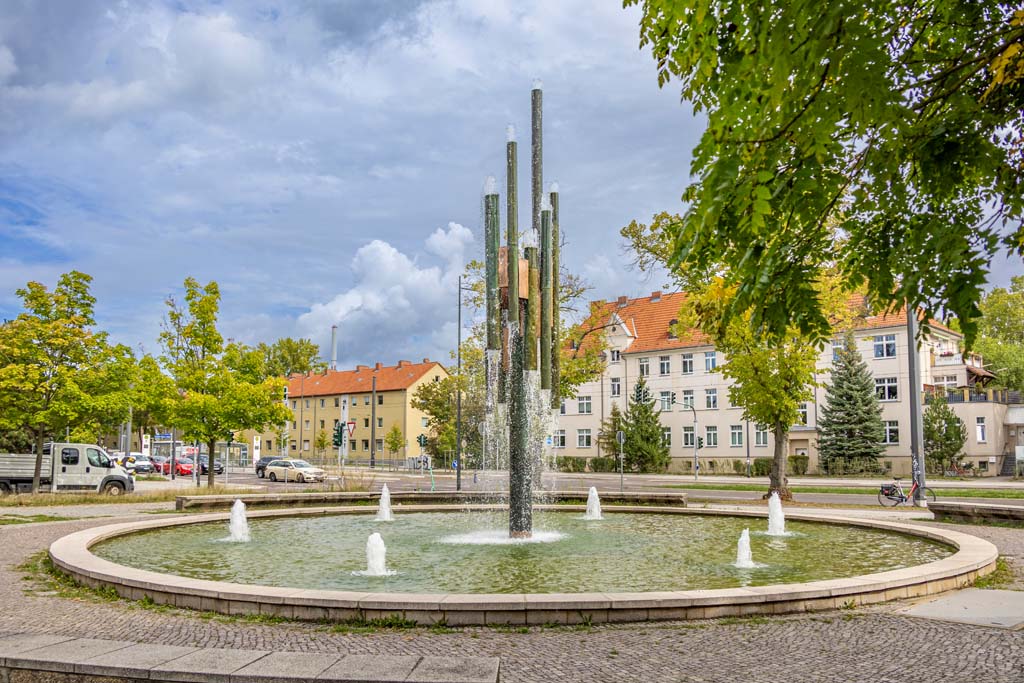 Bestandteil des Wohnungsbaus der 50er und 60er Jahre des vorigen Jahrhunderts war eine großzügige Freiflächengestaltung, zu der zahlreiche Brunnen zum Zweck der Wohnumfeldverbesserung gehörten, so auch dieser Brunnen in Trotha, Ecke Seebener Straße.