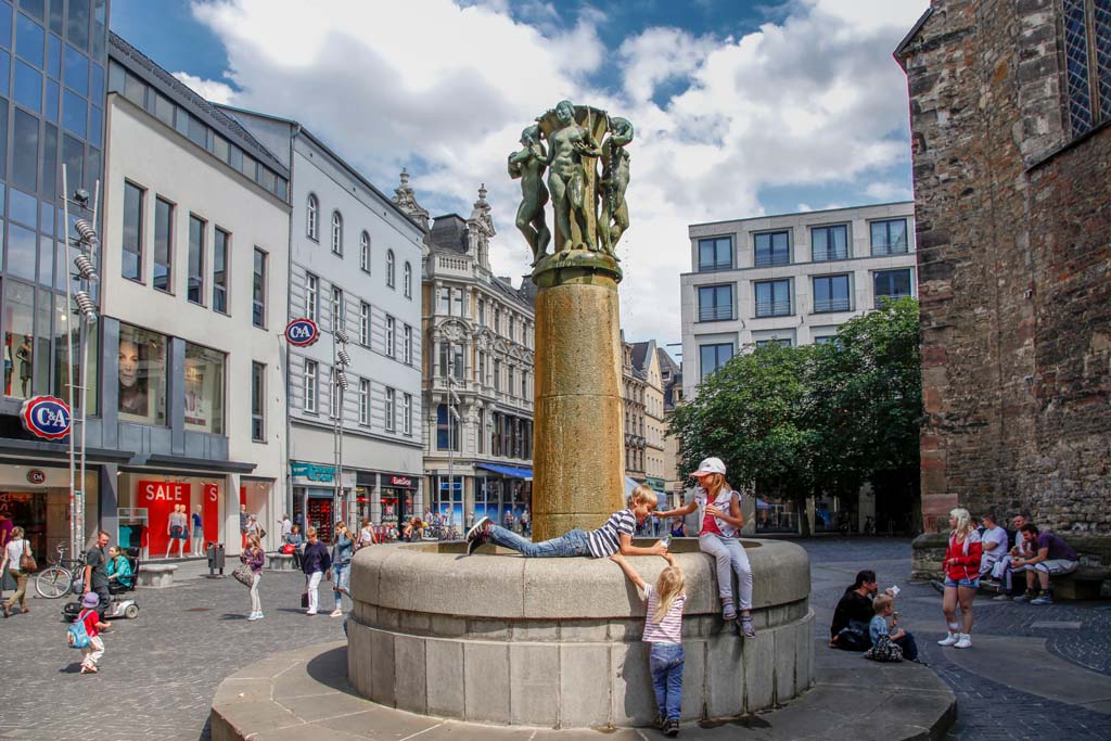 Der Brunnen wurde 1967 errichtet und 1969 mit den Figuren versehen. Ein junges Paar aus Bronze hat sich am Rande des Brunnen niedergelassen und scheint verträumt im Gespräch. Allerdings scheint auch jeder allein mit seinen Gedanken.