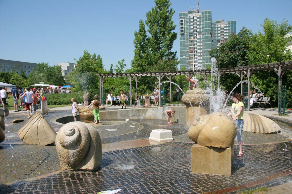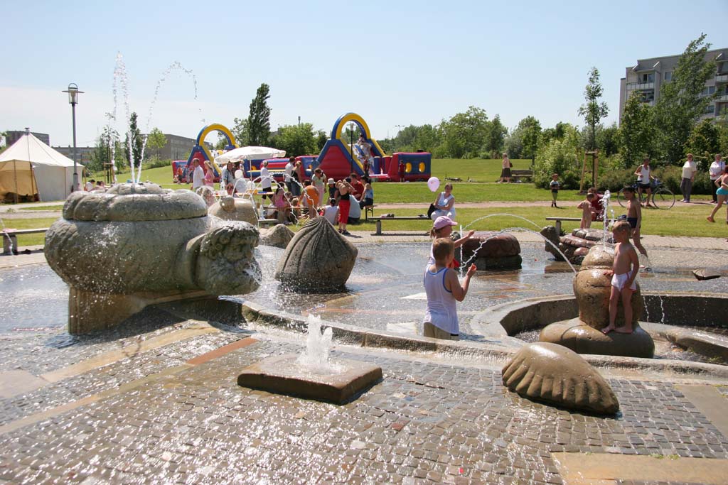 Im "Grünen Dreieck" des Stadtteils Heide-Süd befindet sich der Wasserspielplatz in ruhiger Lage. Er bietet das einzigartige Angebot, das nasse Element spielerisch zu entdecken.