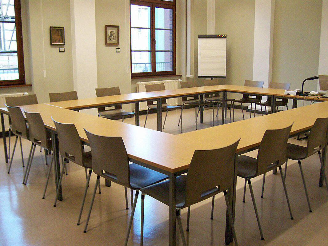 - Filmprojektionswand, Overhead-Projektor, Beamer, Dia-Projektor, Flip-Chart, Rednerpult, interaktive Tafel