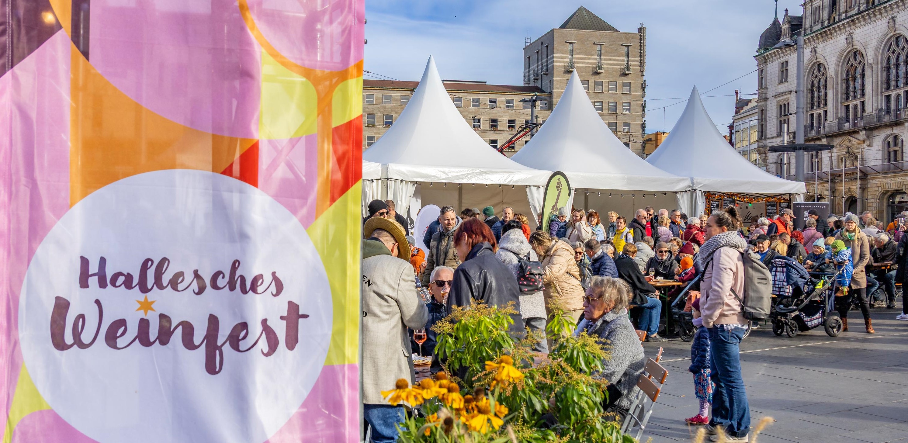 Freuen Sie sich auf das nächste Weinfest vom 5. bis zum 7. Juni 2026, welches mit dem Motto „In Händel Veritas – Musik und Wein für (H)alle“ parallel zu den Händel-Festspielen stattfindet. Auf der Bühne vor der Marktkirche präsentieren sich Chöre, Bands und Ensembles aus Halle und der Region – von Barock bis Jazz und Pop. Lesungen, Gespräche und weitere Highlights machen das Wochenende zu einem offenen Fest der Künste. Dazu laden Winzer zum Probieren und Verweilen ein. So verbinden sich Musikgenuss und Gastfreundschaft, Tradition und Gegenwart auf ganz unmittelbare Weise. Ein musikalisch-kulinarisches Wochenende ganz im Sinne Händels, des Genießers.