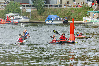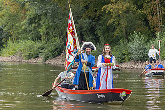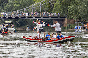 Der Startschuss zum traditionellen Fischerstechen auf der Saale.