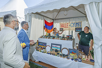Bürgermeister Egbert Geier am Stand der Partnerstadt Gyumri im Städtepartnerschaftsdorf.