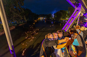 Selfies vor den in der Saale ausgesetzten Glühwürmchen.