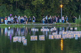 Auf der Fontäne wurden schwimmende Lichter ausgesetzt.