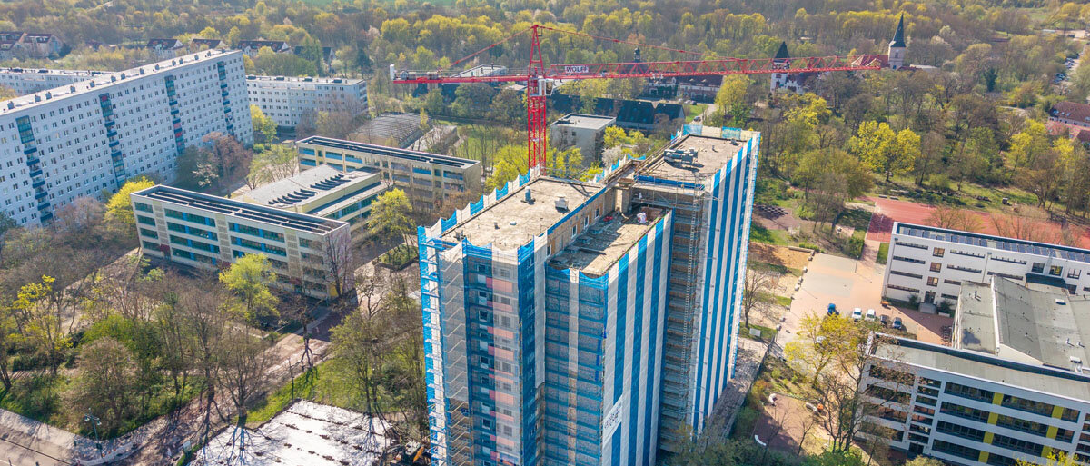 Der Rückbau des Hochhauses an der Richard-Paulick-Straße für den künftigen „Campus Halle-Neustadt“ hat vor einigen Tagen begonnen