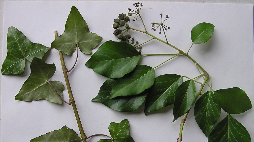 - Erscheinung der Heterophyllie (Verschiedenblättrigkeit an einer Pflanze) und des Sprossdimorphismus: junge Triebe mit Haftwurzeln (Kriech-, Kletterspross) entwickeln drei- bis fünflappige Blätter, ab dem Alter von 20 Jahren sind alte Triebe (Blühsprosse) sind aufrecht und wurzellos, mit einfachen rautenförmig-eilanzettlich, ungelappten Blättern, nur an sonnigen Standorten gebildet