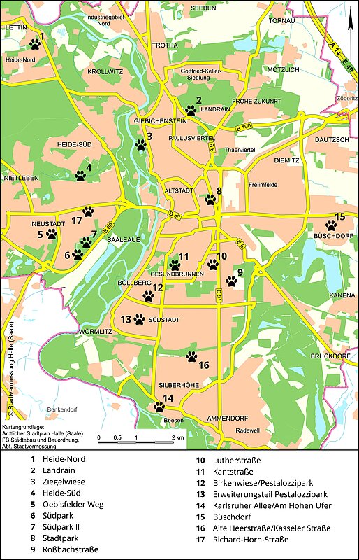 In Halle (Saale) gibt es 16 Hundewiesen.
