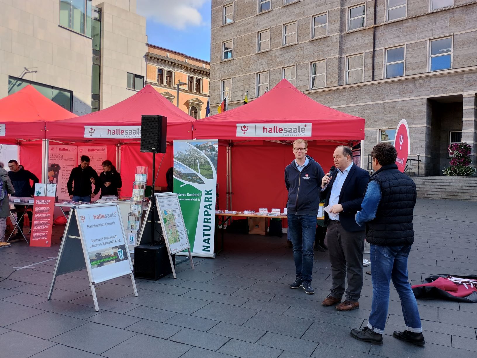Der kommunale Umwelttag fand am 25. Juni 2022 von 10 bis 16 Uhr auf dem Marktplatz statt, zu dem die Stadt Halle (Saale) alle Bürgerinnen und Bürger eingeladen hatte.