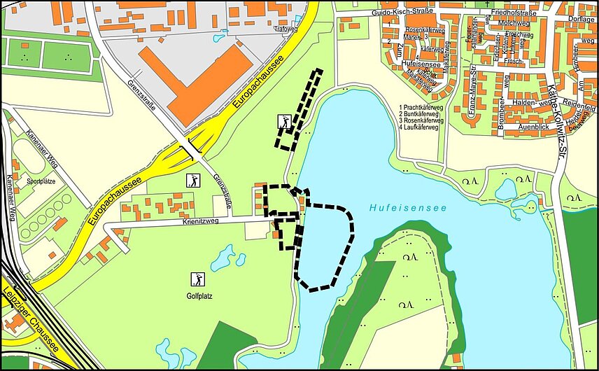 Die durch die 1. Änderung des Bebauungsplanes Nr. 158 „Freizeit- und Erholungsraum Hufeisensee“ erfassten Teilflächen befinden sich