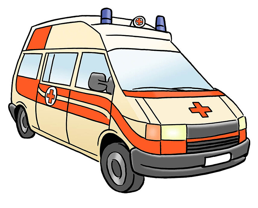 Manchmal müssen die Menschen auch mit einem Rettungs-Wagen fahren.