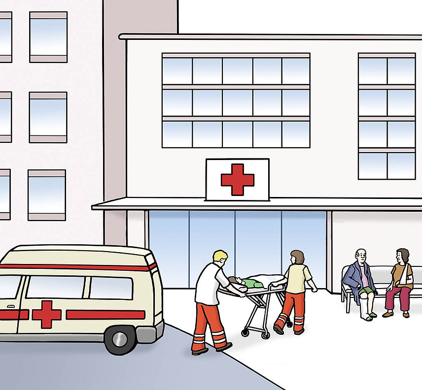 Sie müssen mit dem Kranken-Wagen ins Kranken-Haus?