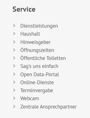 Sie finden unter Service zum Beispiel Links: