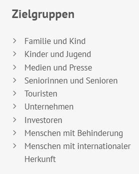 Sie finden unter Ziel-Gruppen zum Beispiel Informationen für: