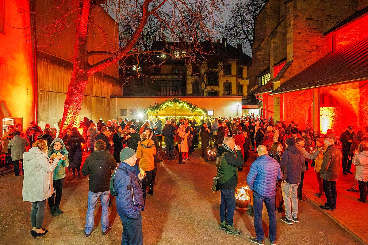 Geselliges Beisammensein im Innenhof der Ulrichskirche