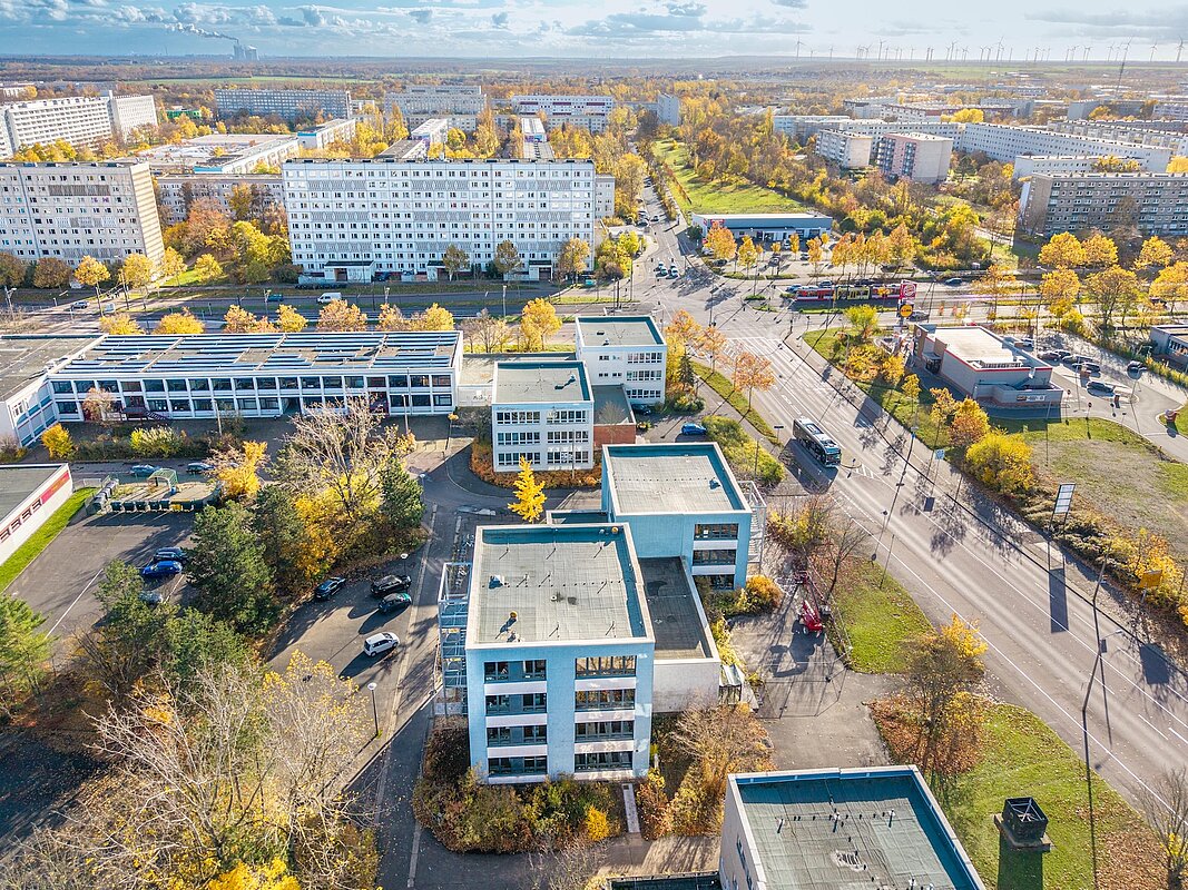 (halle.de/ps) Mit der Montage von zwei Treppentürmen hat die Stadt Halle (Saale) die Brandschutzsanierung der Schulen des Zweiten Bildungsweges Sachsen-Anhalt in der Nietlebener Straße 4 in Neustadt beendet. Für insgesamt rund 1,2 Mio. Euro wurde in den vergangenen Monaten an der Ost- und Westseite des Gebäudes je ein Stahltreppenturm angebaut. Nachdem jetzt auch die zweite Fluchttreppen-Anlage mit Bauabnahme und Einweisung offiziell an die Schule übergeben wurde, existiert nun für alle Räume des Schulgebäudes ein zweiter baulicher Rettungsweg. Im Zuge der Brandschutz-Sanierung durch die Stadt als Gebäudeeigentümerin wurden zudem die Treppenräume durch Rauchschutztüren abgetrennt und eine Sicherheitsbeleuchtungsanlage eingebaut. Die Baumaßnahme am halleschen „Gymnasium für Erwachsene“ wurde nicht durch Fördermittel finanziert, es wurden städtische Eigenmittel investiert.