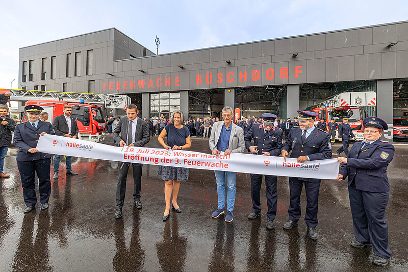 „Wir bringen heute mit der neuen Feuerwache ein echtes Novum für die Stadt Halle (Saale) an den Start.“, erklärt Bürgermeister Egbert Geier. “Es ist das erste Mal, dass Berufsfeuerwehr und Freiwillige Feuerwehr gemeinsam unter einem Dach untergebracht sind. Hier in dieser neuen Wache wird diese Zusammengehörigkeit nun auch ganz praktisch gelebt und nach außen getragen.“