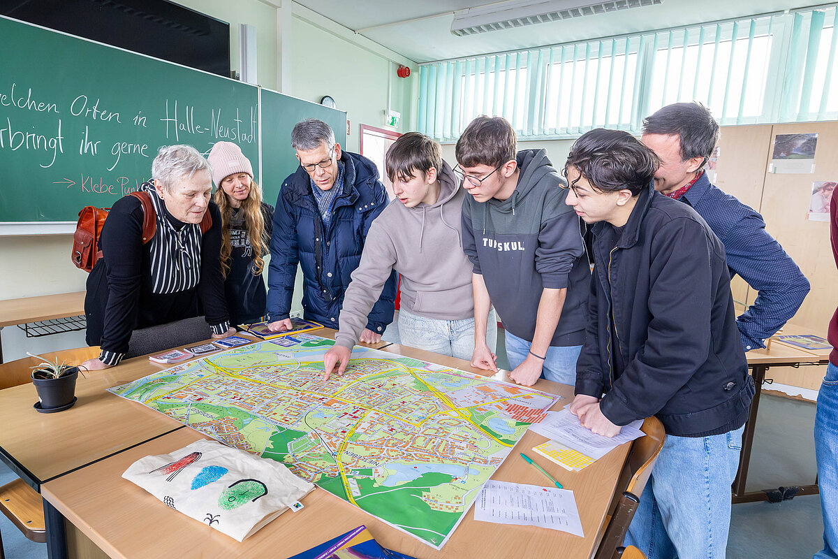 Flankierend absolvierten Schülerinnen und Schüler der beiden Schulen am Vormittag eine Rallye im Gebäude des Christian-Wolff-Gymnasiums. Ziel war es, ein Gefühl dafür zu vermitteln, was am „Campus Halle-Neustadt“ zukünftig passieren soll. Dafür boten zahlreichen Kooperationspartner wie die Papenburg AG, die Kunsthochschule Burg Giebichenstein, Science2public, das Salinetechnikum, die Passage 13, das Quartiersmanagement der Stadt Halle (Saale), das Schülerforschungszentrum oder auch das Smart-City-Team der Stadt den Schülerinnen und Schülern die Möglichkeit, sich über Angebote und Zukunftsperspektiven zu informieren und auszutauschen.