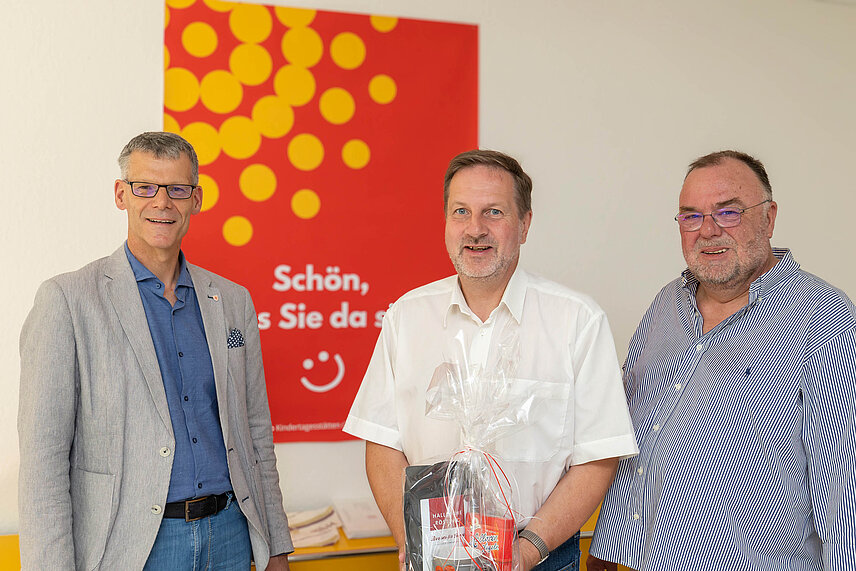 (halle.de/ps) Der Eigenbetrieb Kindertagesstätten der Stadt Halle (Saale) hat einen neuen Betriebsleiter: Diplom-Kaufmann Hans-Jürgen Scherer hat am heutigen Montag, 10. Juli 2023, seinen Dienst in der Verwaltung des städtischen Eigenbetriebs angetreten. Bürgermeister Egbert Geier begrüßte den neuen Kita-Betriebsleiter zusammen mit Mitarbeiterinnen und Mitarbeitern sowie mit Goswin van Rissenbeck, der im Herbst 2022 die Leitung des städtischen Eigenbetriebs kommissarisch übernommen hatte.