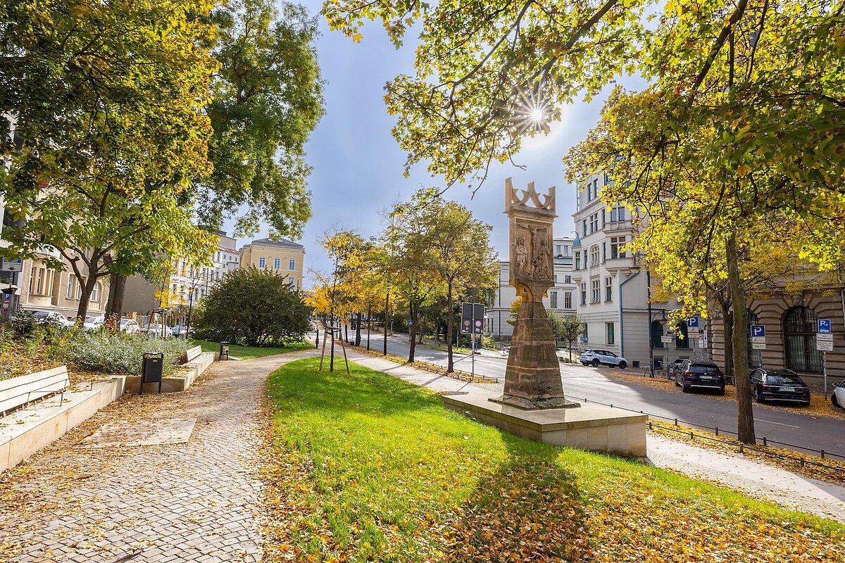 Die historische Betsäule ist in die Neugestaltung integriert. Die gotische Steinsäule aus dem Jahr 1455, die als Dank für das Überstehen von Pestepidemien errichtet wurde und daher auch Pestsäule genannt wird, hat einen Sockel aus Sandstein erhalten. Auch das Robert-Franz-Denkmal hat seinen Platz in der Grünanlage behalten.