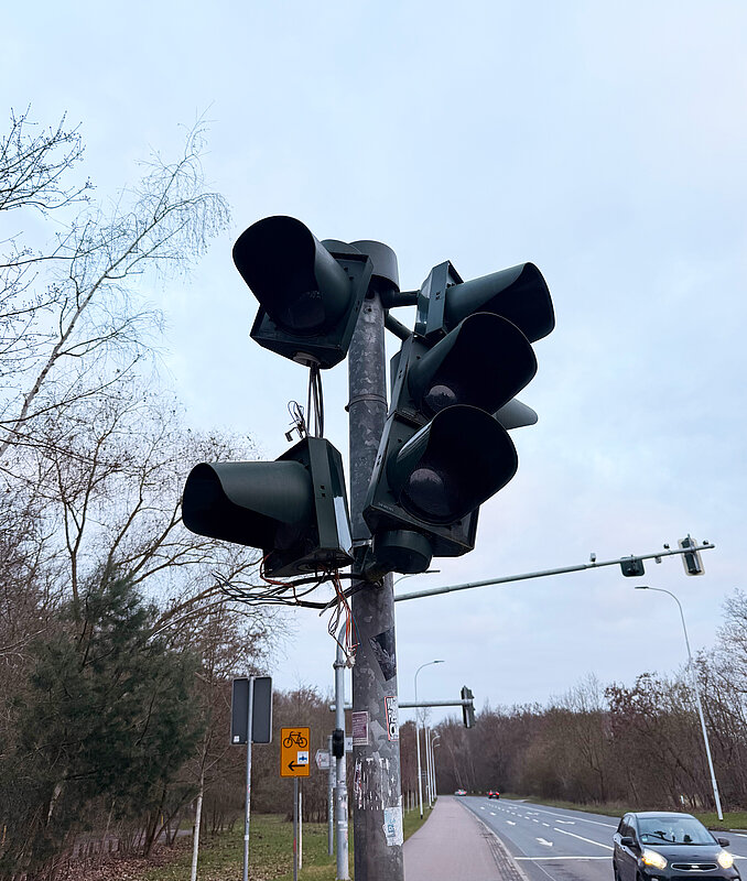Außerdem ist die Ampelanlage an der Kreuzung Paul-Suhr-Straße/Murmansker Straße nach einem Verkehrsunfall seit Samstag, 28. März 2026, nicht mehr funktionstüchtig. Ein Mast mit mitsamt seiner technischen Ausrüstung (Signalgeber, Taster) wurde bei dem Unfall zerstört.