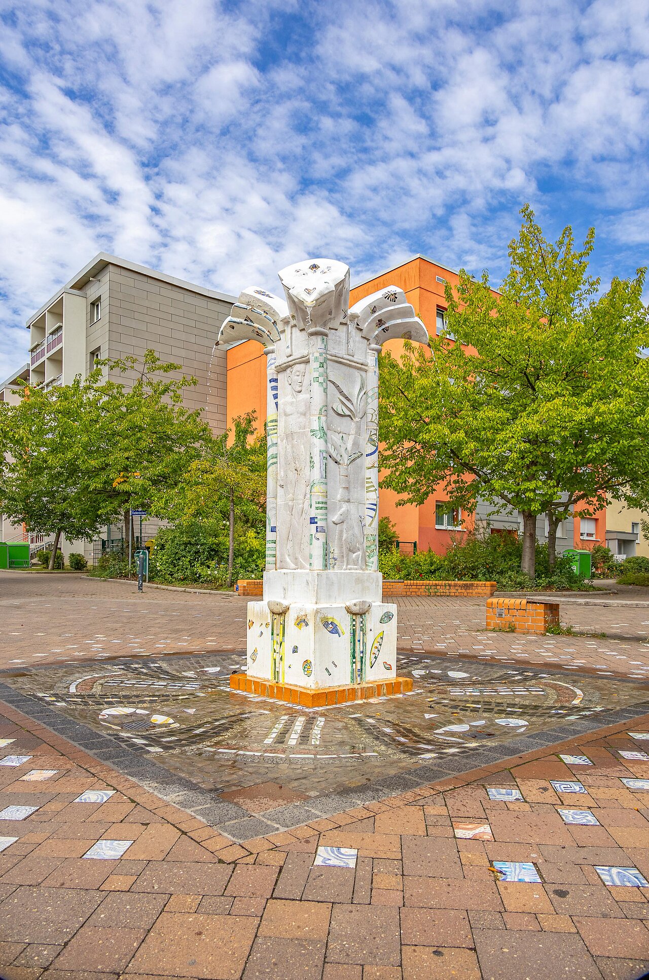 (halle.de/ps) Nach der Reparatur des bekannten Kaktusbrunnens in Neustadt, der Restaurierung des Großen-Buna-Brunnens am Rosengarten und der Beseitigung der Vandalismusschäden an der Brunnenstele in Heide-Nord hat die Stadt jetzt drei künstlerisch gestaltete Brunnen wieder in Betrieb genommen.