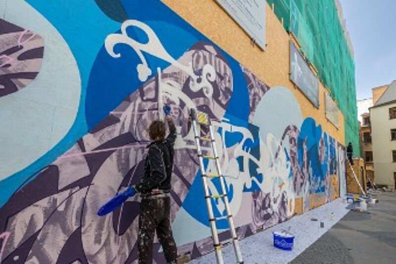 Streetart: Stadt lässt Baugerüst an der Konzerthalle künstlerisch gestalten