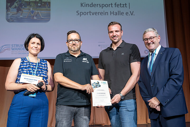Darunter waren auch die Gewinner der fünf Publikumspreise. Darunter war auch das Projekt „Kindersport fetzt“ des Sportvereins Halle e.V. . Der Preis ist mit 18.800 Euro dotiert Vom 17. August bis einschließlich 3. September konnten Bürgerinnen und Bürger per Online-Voting über ihre fünf Lieblingsprojekte aus den Landkreisen Mansfeld-Südharz, Anhalt-Bitterfeld, Saalekreis, Burgenlandkreis und der Stadt Halle (Saale) abstimmen. Insgesamt gingen über 1700 Stimmen ein.