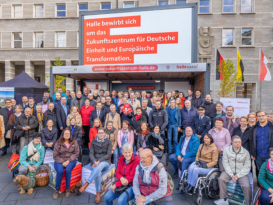 Das Zukunftszentrum für Deutsche Einheit und Europäische Transformation entsteht in Halle (Saale). Es soll ein Ort der persönlichen Begegnung, der Wissensaneignung, der kritischen Debatte, der Auseinandersetzung und der bürgerschaftlichen Partizipation sein.